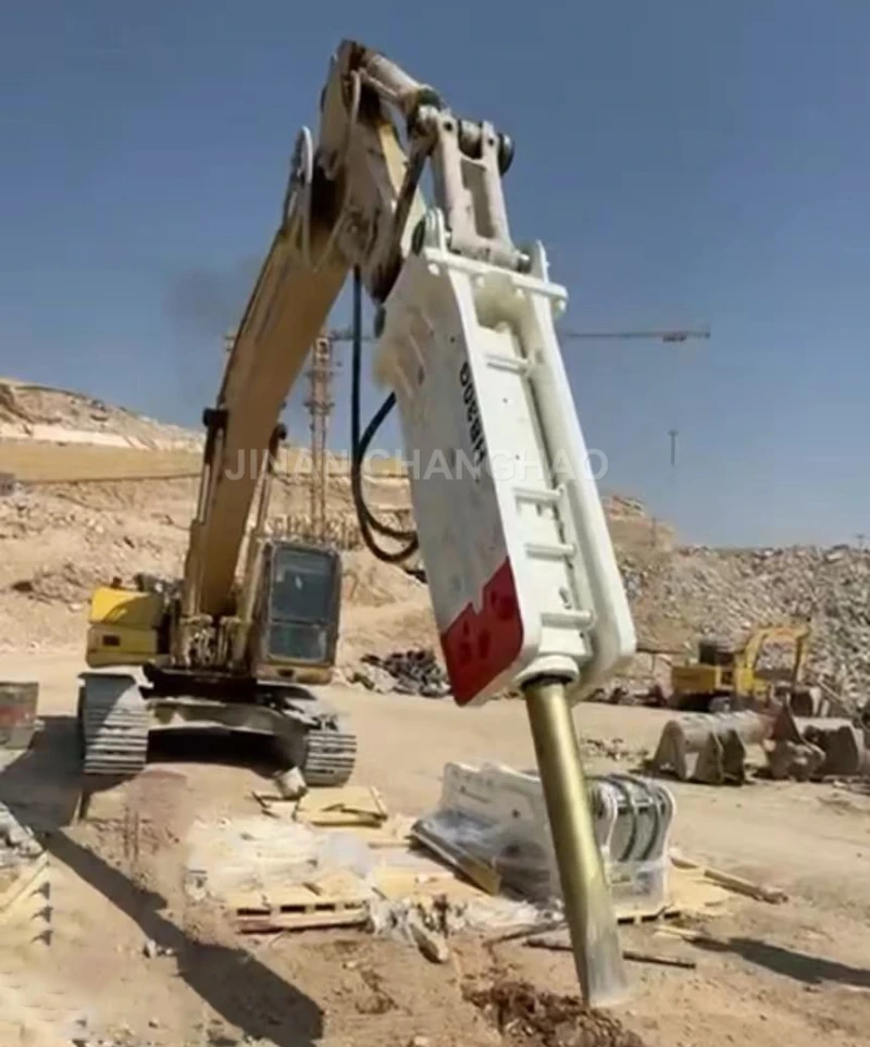 ② Parameter Adjustment: Adjust the hydraulic breaker’s strike frequency to a medium-to-low setting (e.g., 200-250 blows/minute) to extend the energy accumulation time of each blow. (For hard rock, use a “heavy hammer and slow strike” method to avoid energy dispersion caused by frequent, light strikes.) At the same time, adjust the hydraulic system pressure to 90%-95% of the rated pressure to avoid overpressure damage to seals.